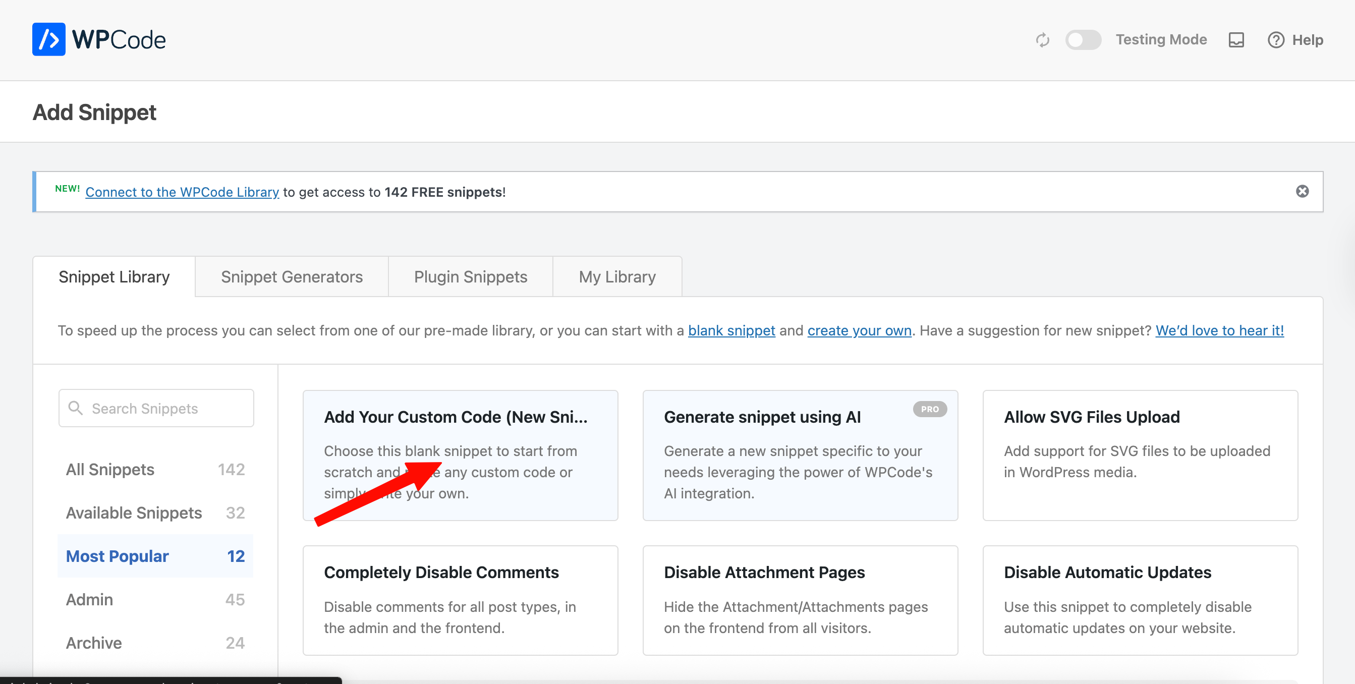 - Click on "Add Your Custom Snippet"