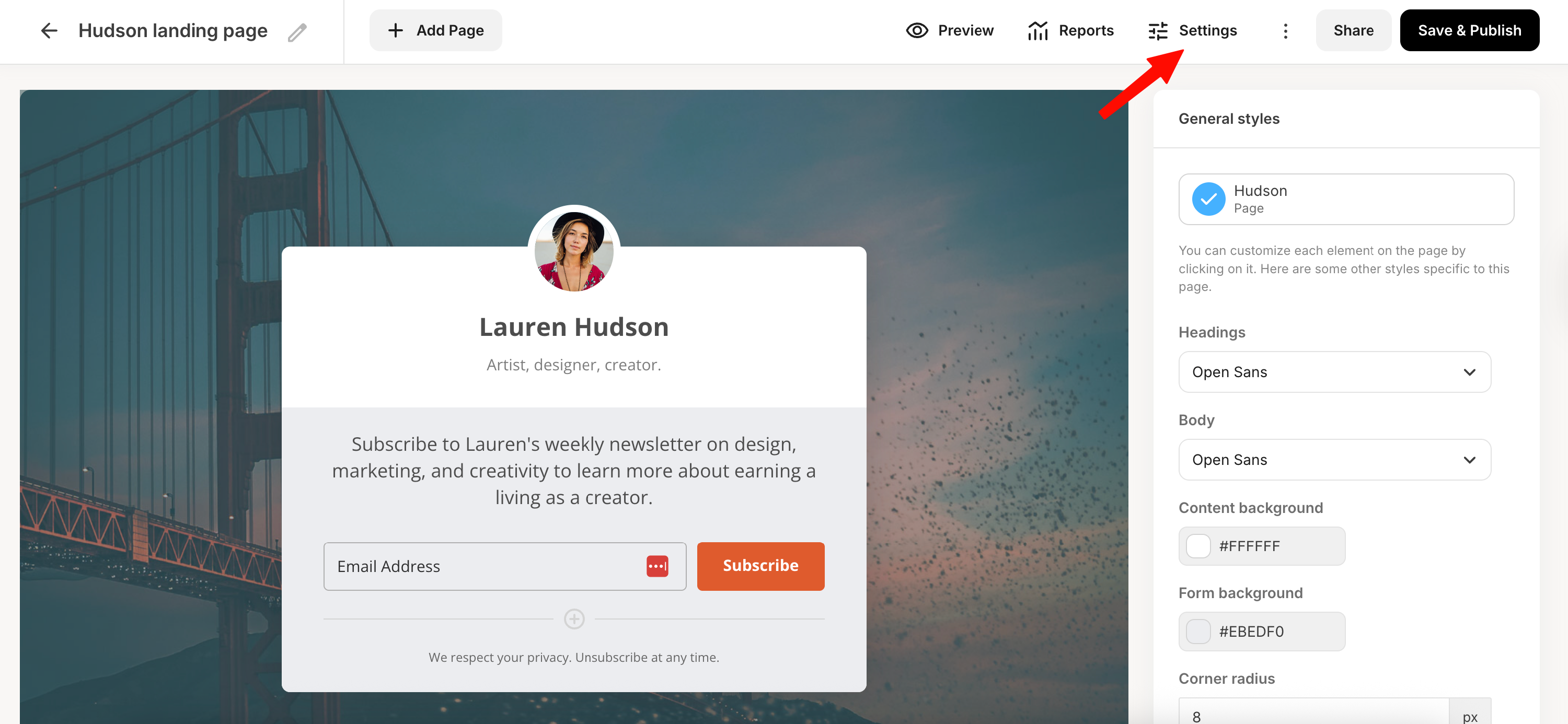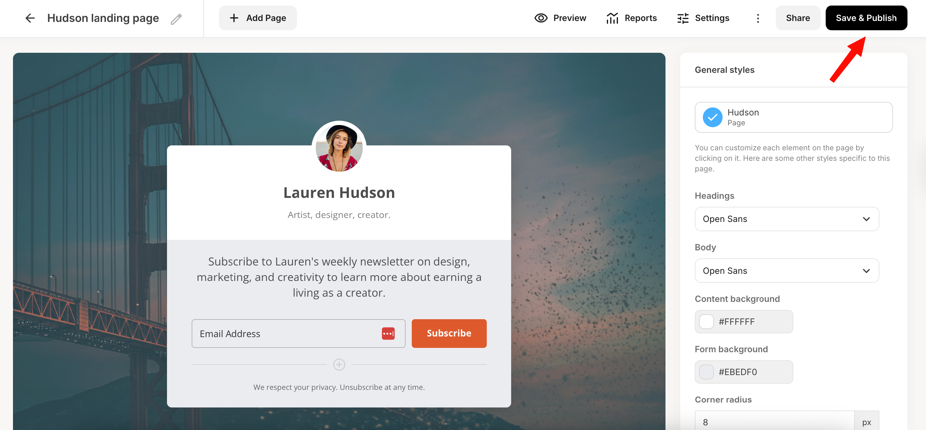- Click on "Save & Publish" and your Kit landingpage is ready to go
